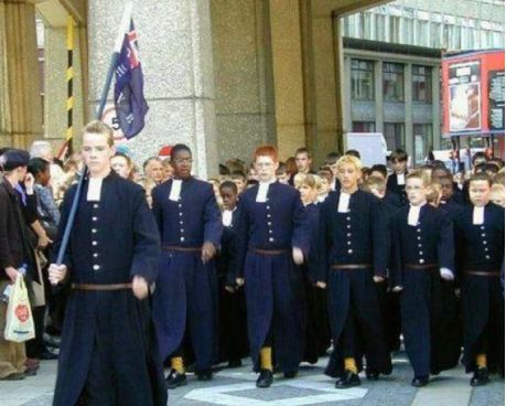 歐洲的校服仍然維持著它一直以為低調(diào)和貴族的傳統(tǒng),被譽(yù)為最正統(tǒng)的校服,沿用了多年的皇室制服款式。英國(guó)校服款式經(jīng)典、簡(jiǎn)潔大方,中學(xué)生必須穿著正統(tǒng)西式校服,男生為正統(tǒng)西裝、正規(guī)皮鞋、需要佩戴領(lǐng)帶,女生也是統(tǒng)一西式正統(tǒng)服裝、正規(guī)女式皮鞋、必須佩戴領(lǐng)花,不論是?;?、帽徽,無一不顯示著英國(guó)人特有的風(fēng)度和氣質(zhì)。也不知是歐洲的學(xué)生更嚴(yán)肅還是校方更強(qiáng)硬,他們的態(tài)度似乎是“學(xué)生就要穿得像個(gè)學(xué)生的樣子”。他們對(duì)校服的重視程度也不輸給日本,認(rèn)為校服是培養(yǎng)學(xué)生紀(jì)律意識(shí)最直接的手段。