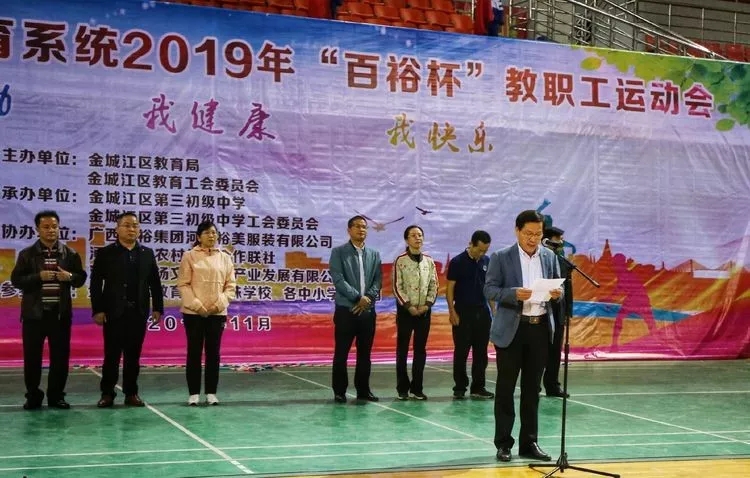 為促進(jìn)全民健身運動廣泛開展,活躍教育系統(tǒng)教職工文體生活,營造團(tuán)結(jié)、和諧、向上的教職工氛圍,展示教育系統(tǒng)干部職工良好精神風(fēng)貌,2019年11月22日,河池市金城江區(qū)教育系統(tǒng)"百裕杯"教職工運動會在河池市金城江體育館舉行,活動為期三天