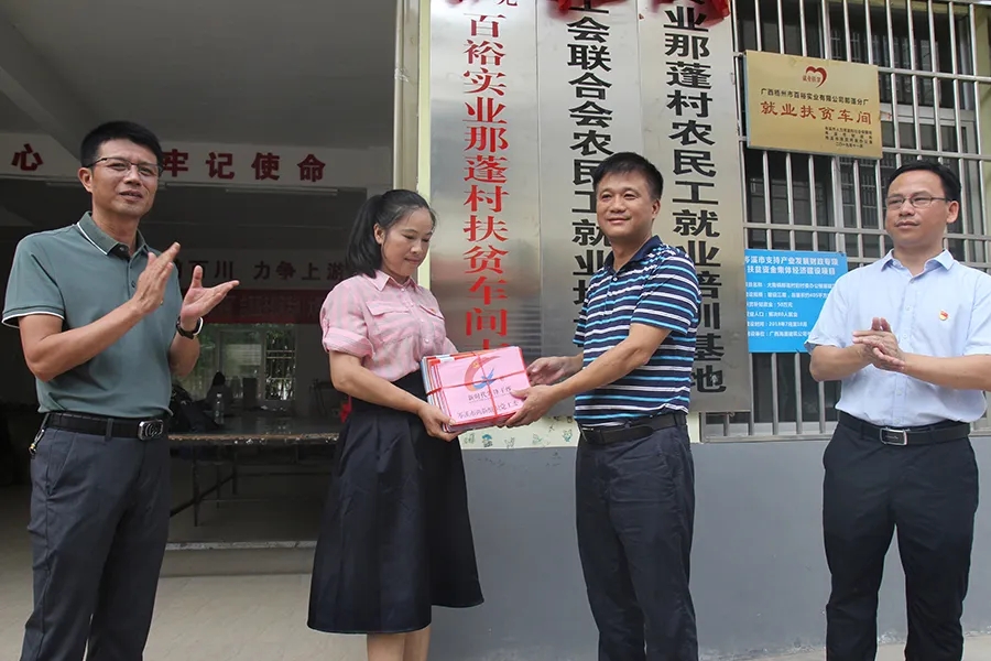 7月2日上午,兩新組織百裕實(shí)業(yè)大隆鎮(zhèn)那蓬村扶貧車(chē)間黨支部舉行揭牌儀式,岑溪市委副書(shū)記韋學(xué)文,岑溪市委組織部副部長(zhǎng)、兩新組織黨工委書(shū)記梁越,百裕實(shí)業(yè)黨支部書(shū)記、總經(jīng)理曾晏來(lái),百裕實(shí)業(yè)那蓬村扶貧車(chē)間支部書(shū)記黃春華,黨員職工代表等共同參加了揭牌儀式。