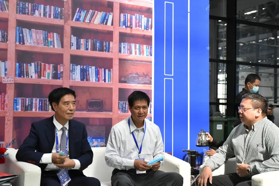 教育部關(guān)心下一代工作委員會(huì)常務(wù)副主任、中國(guó)教育裝備行業(yè)協(xié)會(huì)會(huì)長(zhǎng)王富(左)、廣西教育技術(shù)與信息化中心副主任陳軍(中)
