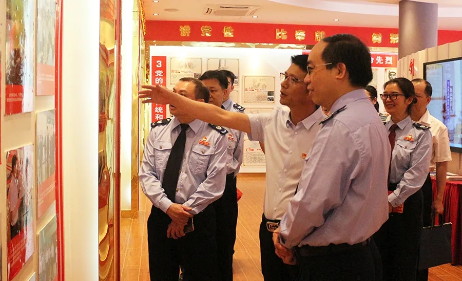 由稅務(wù)局黨組書記、局長陳懿帶隊的交流團在百裕黨支部書記曾晏來的帶領(lǐng)下,參觀黨建中心、黨群活動室,了解我公司黨建工作。