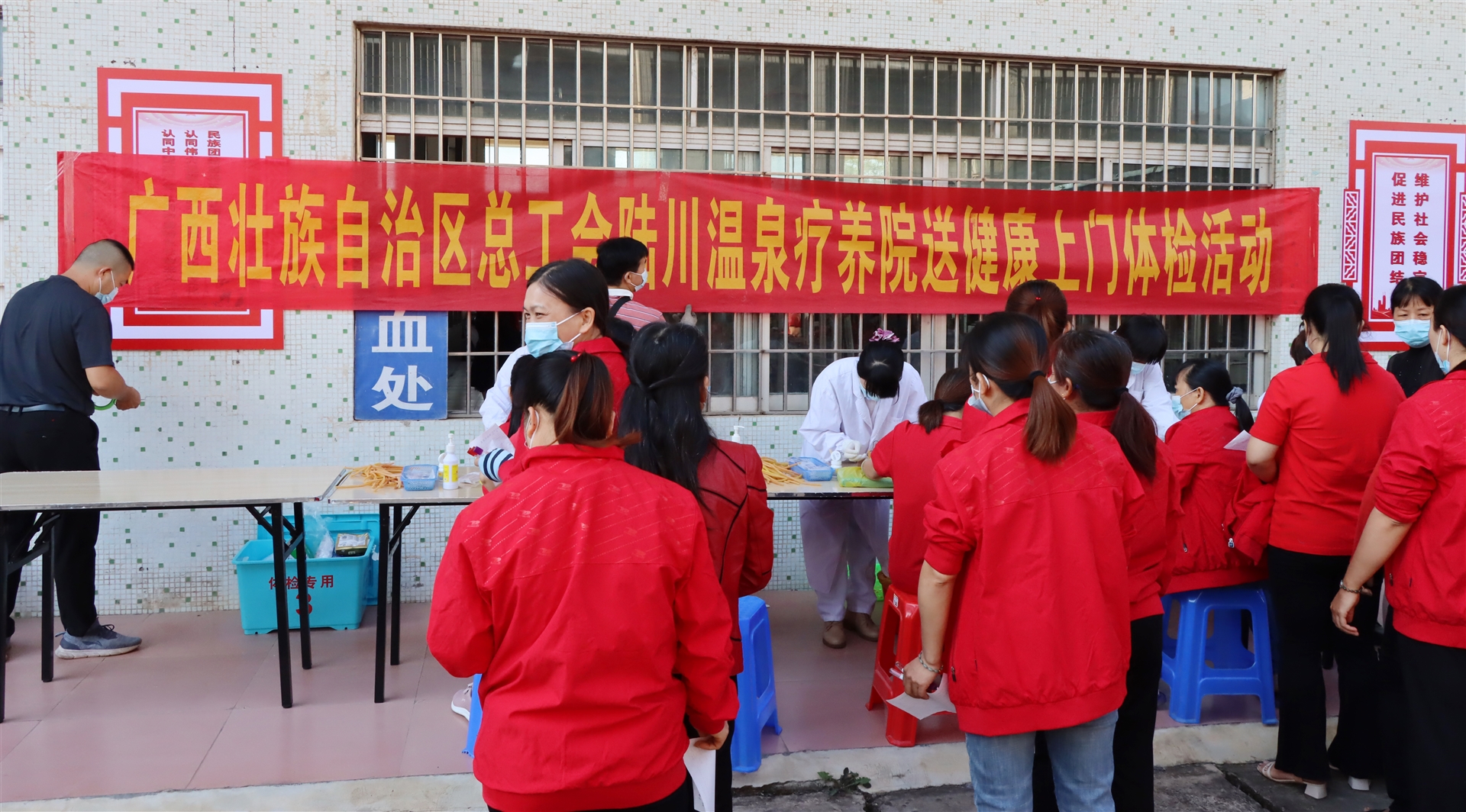 本次送健康體檢服務(wù),由廣西壯族自治區(qū)總工會陸川溫泉療養(yǎng)院的12名醫(yī)護人員上門開展,10月14日一早,體檢醫(yī)護車開進了百裕工業(yè)園,為百裕200多名一線產(chǎn)業(yè)工人提供:血液化驗、B超、肝/腎功能、心電圖、DR胸部影像、癌癥篩查等12項體檢內(nèi)容。