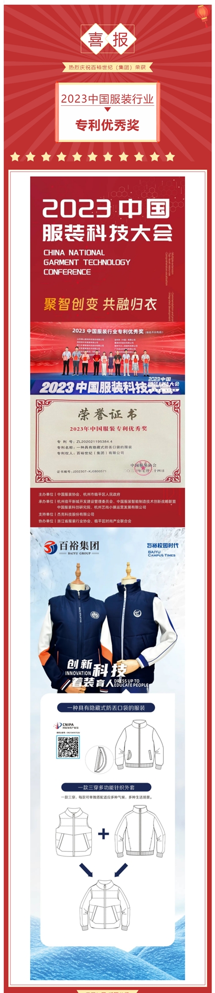 喜報 I 百裕世紀(集團)榮獲 2023中國服裝行業(yè)專利優(yōu)秀獎