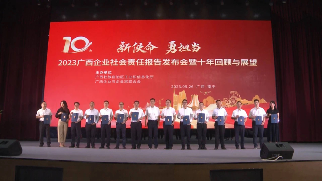 為深入學(xué)習(xí)貫徹黨的二十大精神及習(xí)近平總書記關(guān)于企業(yè)社會(huì)責(zé)任建設(shè)的重要指示精神。2023年9月26日下午,由廣西壯族自治區(qū)工業(yè)和信息化廳、廣西企業(yè)與企業(yè)家聯(lián)合會(huì)共同主辦的“2023廣西企業(yè)社會(huì)責(zé)任報(bào)告發(fā)布會(huì)暨十年回顧與展望”活動(dòng)在南寧隆重舉行。廣西區(qū)各大國(guó)企央企以及各行業(yè)代表企業(yè)包括百裕集團(tuán)在內(nèi)的近百家企業(yè)齊聚一堂,向社會(huì)展示了廣西企業(yè)2022年度履行企業(yè)社會(huì)責(zé)任實(shí)踐取得的主要成果。會(huì)上,百裕集團(tuán)獲頒廣西企業(yè)社會(huì)責(zé)任報(bào)告發(fā)布證書。
