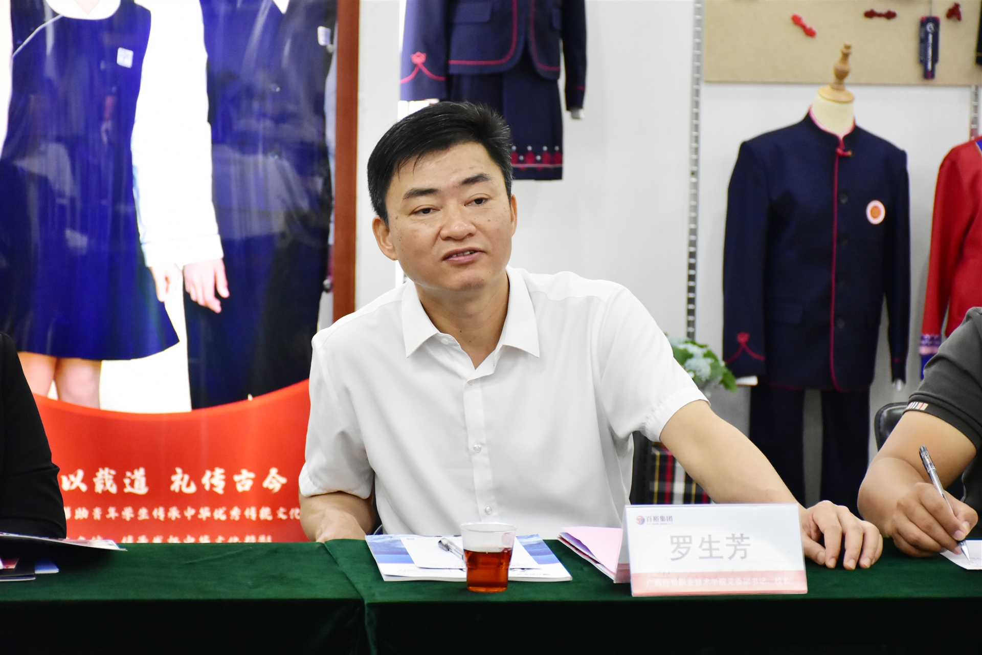 座談會上,百裕集團董事長許曲煌對廣西經貿職業(yè)技術學院的來訪表示熱烈歡迎,并介紹了公司的發(fā)展歷程、業(yè)務板塊、企業(yè)文化及崗位需求等情況。