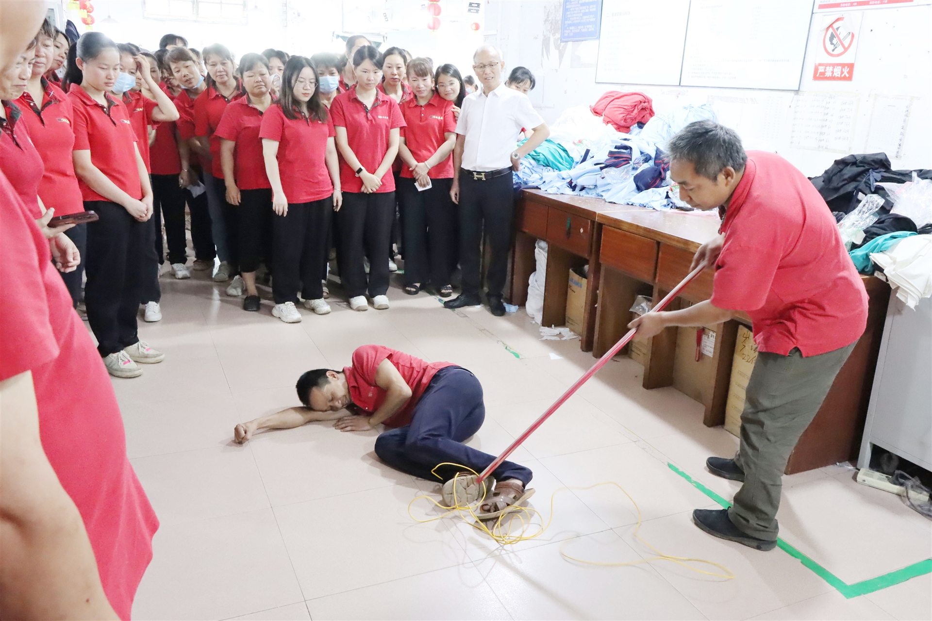 在觸電演練環(huán)節(jié),安全管理員現(xiàn)場(chǎng)演示了正確的急救方法,指導(dǎo)員工在緊急情況下如何正確急救觸電傷員。