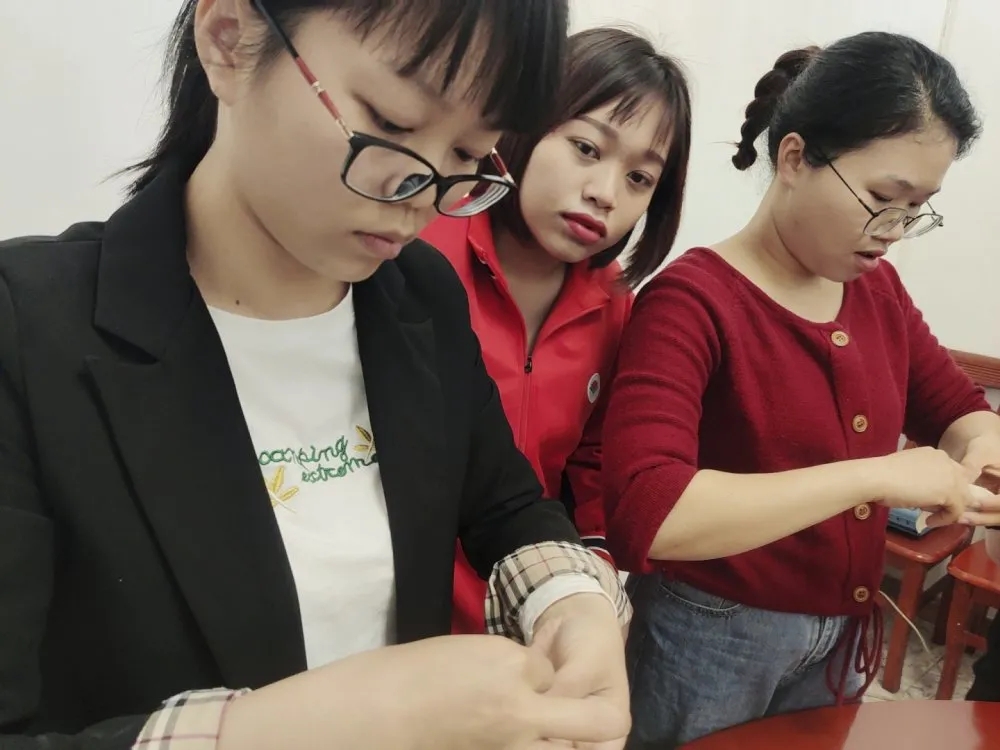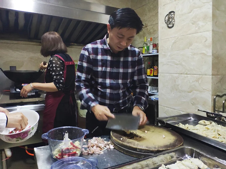 大家齊聚一堂相互交流經(jīng)驗(yàn)學(xué)習(xí),和面、搟皮、拌餡.....分工明細(xì),不一會兒,一盤盤整齊飽滿的餃子就出來了。