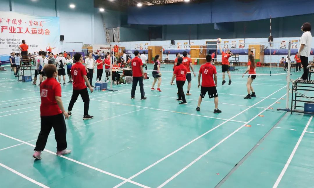 19日上午, 梧州市總工會黨組書記、常務(wù)副主席、市二級巡視員謝善高在運動會開幕式上致辭并宣布運動會開幕,參賽隊伍們井然有序地走進(jìn)了賽場。本次運動會共設(shè)氣排球男女子混合比賽、羽毛球男女子混合團(tuán)體賽兩個項目,百裕世紀(jì)(集團(tuán))有限公司工會組織了12名產(chǎn)業(yè)運動員參加了此次工人運動會,與全市數(shù)十家優(yōu)秀企業(yè)單位的產(chǎn)業(yè)工人運動員同場競技。 隨著裁判一聲哨響,比賽正式開始。各參賽隊伍排兵列陣,一幕幕飛身暴扣、攔網(wǎng)截?fù)簟⑶擅顐鹘拥木矢偧籍嬅鎽?yīng)接不暇,現(xiàn)場歡呼聲,加油聲絡(luò)繹不絕。