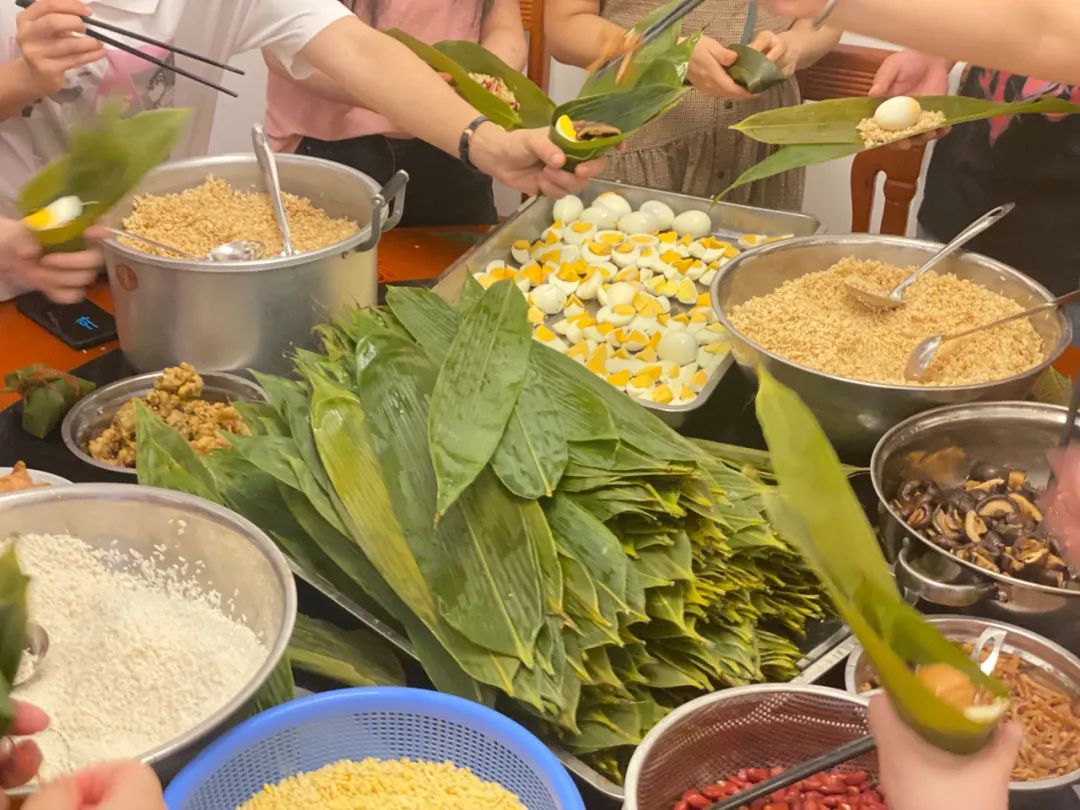 6月21日,百裕集團(tuán)南寧營(yíng)銷中心的同事們?cè)缭缇蛠?lái)到餐廳進(jìn)行準(zhǔn)備工作,各顯神通。活動(dòng)中大家一起交流包粽子的技巧