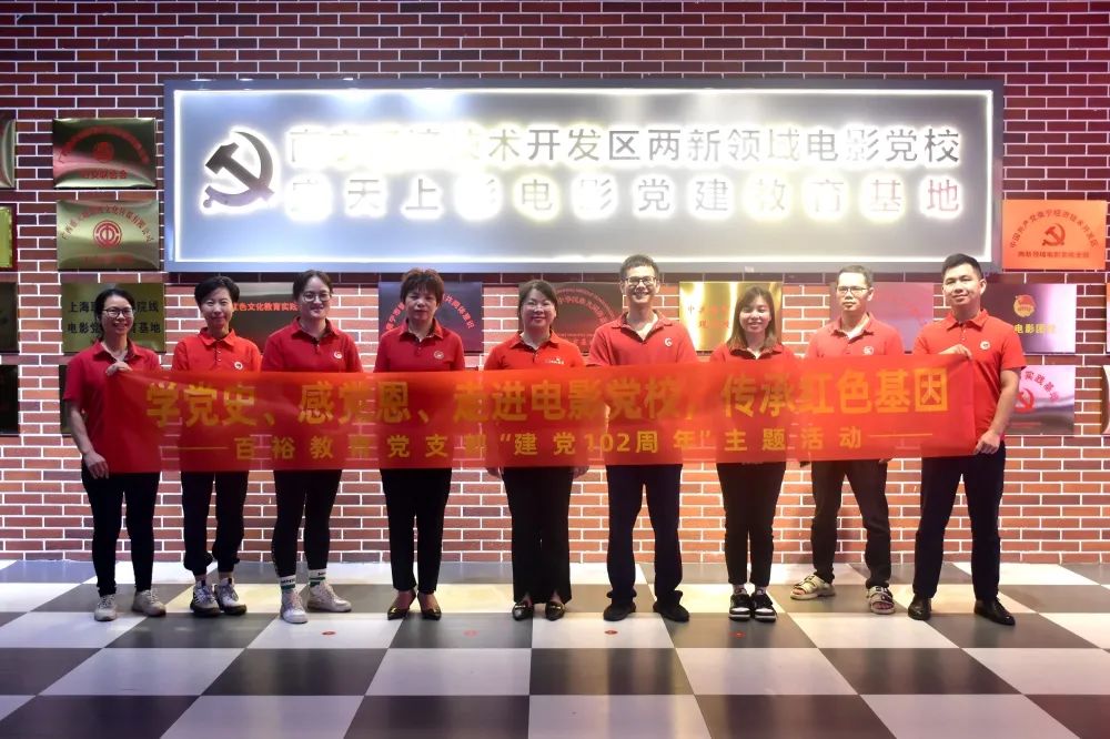 百年風(fēng)雨紅旗更艷,萬(wàn)里江天歲月如歌。為慶祝中國(guó)共產(chǎn)黨建黨102周年,進(jìn)一步強(qiáng)化黨員的身份及責(zé)任意識(shí),充分發(fā)揮基層黨組織的戰(zhàn)斗堡壘作用,激發(fā)黨員的責(zé)任感與使命感,在七一建黨節(jié)來(lái)臨之際,6月28日下午,百裕教育黨支部書記曾凱蘭組織帶領(lǐng)公司黨員職工在南寧經(jīng)濟(jì)技術(shù)開(kāi)發(fā)區(qū)兩新領(lǐng)域電影黨校開(kāi)展“學(xué)黨史、感黨恩、走進(jìn)電影黨校,傳承紅色基因”建黨102周年主題活動(dòng)。