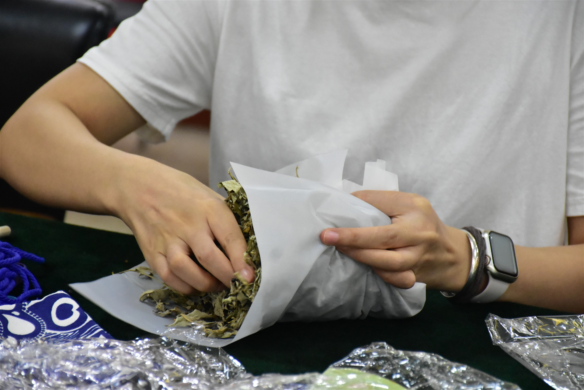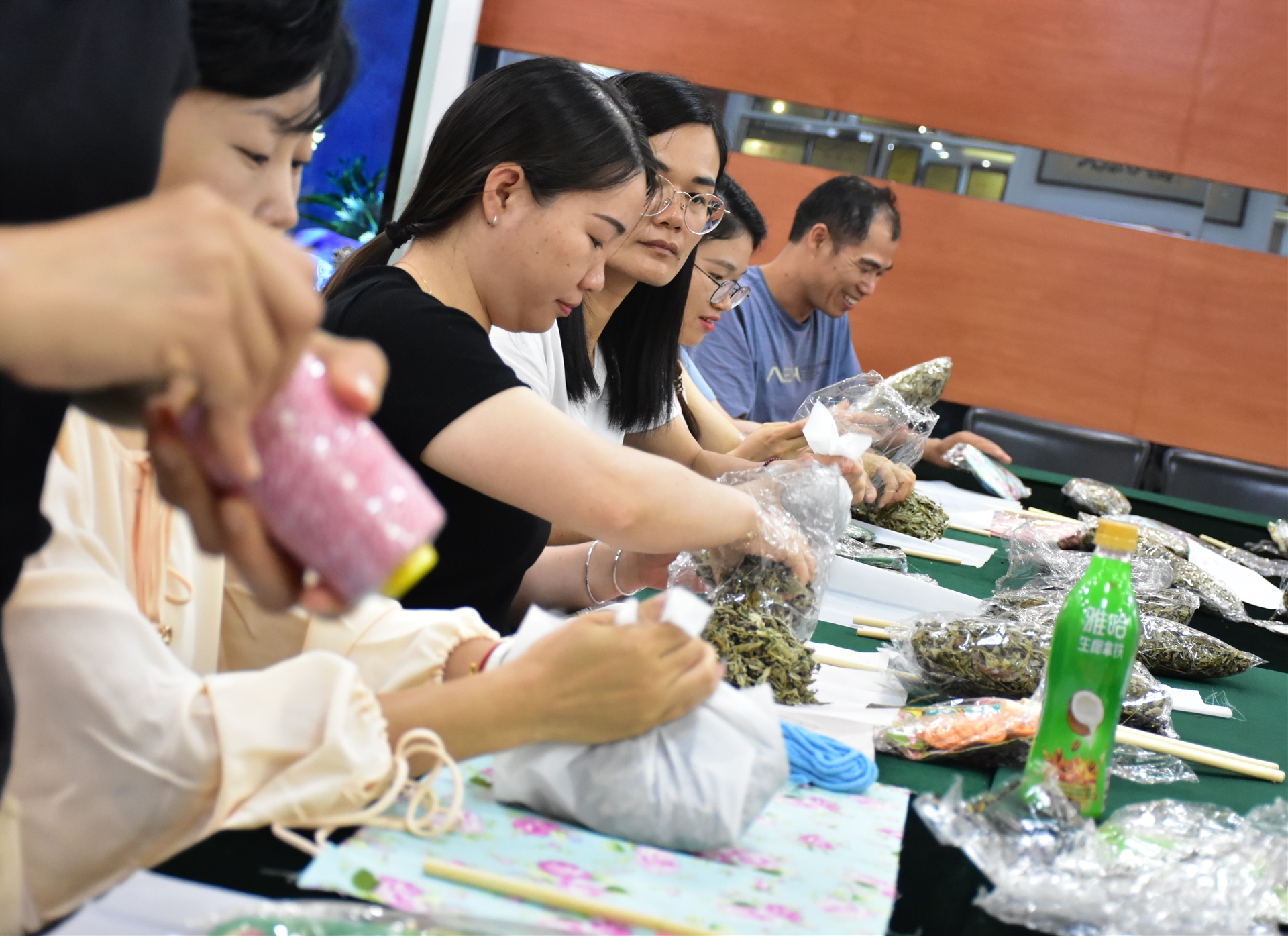 每位員工都認真挑選艾草,細心纏繞五彩線,精心固定小錘子。制作過程中,大家互相交流心得,分享技巧,現(xiàn)場洋溢著歡聲笑語。