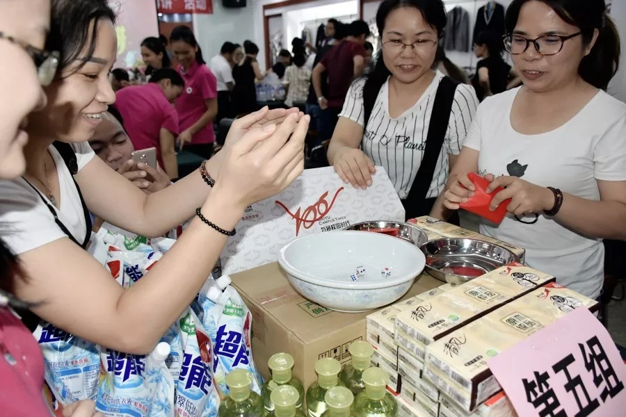 博餅的號(hào)角一經(jīng)蔡總經(jīng)理吹響,各個(gè)小組(八人圍成一桌,妥妥準(zhǔn)備就緒)果斷開撕,場(chǎng)面十足熱鬧。一時(shí)間,骰子與碗碰撞的清脆聲、奪得大獎(jiǎng)時(shí)的歡呼聲此起彼伏。