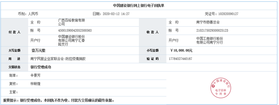 新型冠狀肺炎疫情抗疫過程中,醫(yī)護物資需缺,2月1日百裕集團全體積極響應(yīng),奉獻愛心。向公司員工發(fā)起捐贈倡議書,在集團許曲煌董事長的帶領(lǐng)下,各中心各分公司各部門的員工們踴躍捐款,慷慨解囊,支持國家抗疫,共計募捐現(xiàn)金97920元,將購買防護用品捐贈給廣西河池市、梧州市等地區(qū)防控抗疫使用。