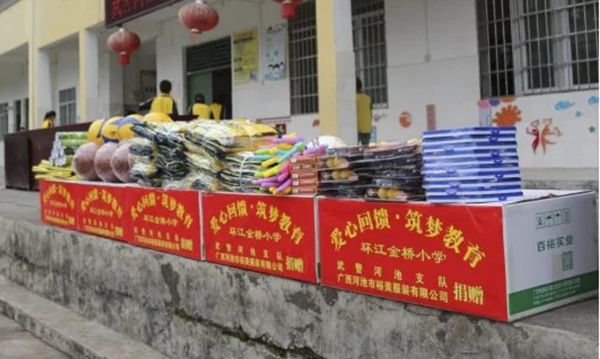 5月26日,河池分公司走進(jìn)環(huán)江大安鄉(xiāng)金橋希望小學(xué),為孩子們送去文體用品和愛(ài)心校服,學(xué)校全體師生參加了此次捐贈(zèng)活動(dòng)。