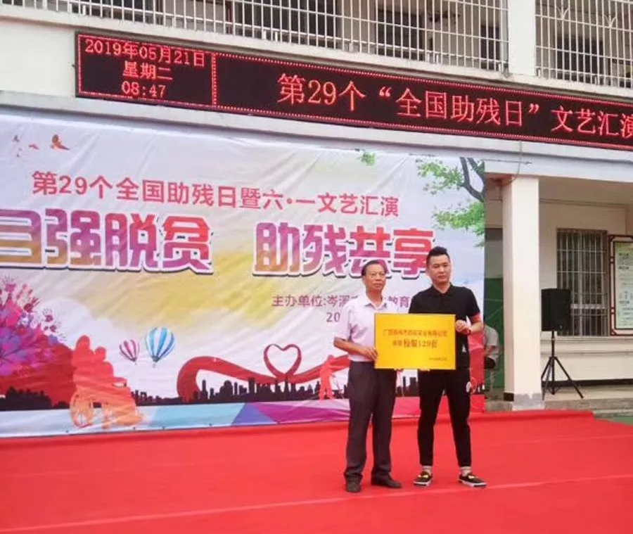 時(shí)值第二十九個(gè)全國(guó)助殘日,5月21日,以“自強(qiáng)脫貧 助殘共享”為主題第29個(gè)全國(guó)助殘日暨六一文藝匯演在岑溪市特殊教育學(xué)校舉行,活動(dòng)中,百裕集團(tuán)為孩子們送出愛心校服129套,以此共同為孩子們慶祝屬于他們的節(jié)日。